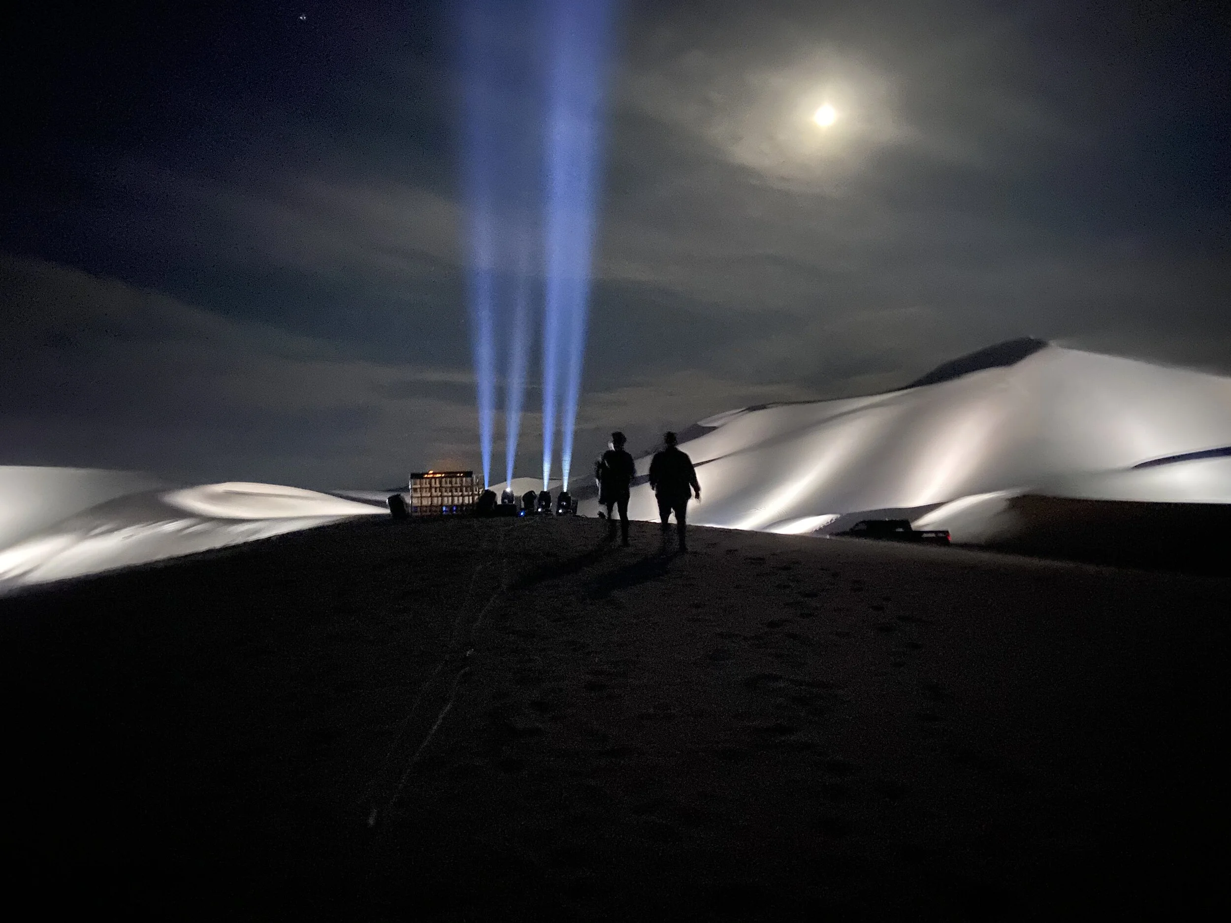 Shot in the Amargosa Dunes of Death Valley, we lit up four football fields of sand for an exclusive, 45 minute DJ set by electronic artist 3LAU. The lighting design comprised of over six generators, 8,000 feet of cable, 40,000 watts of power, and one week of preprogramming on GrandMA2 and visualization with WYSIWYG. The logistical triathlon was spearheaded by Producer and Director Liam Campbell and and was made possible with the help of the entire production team. The panoramic, explosive, and breathtaking set premiered live on InsomniacTV.